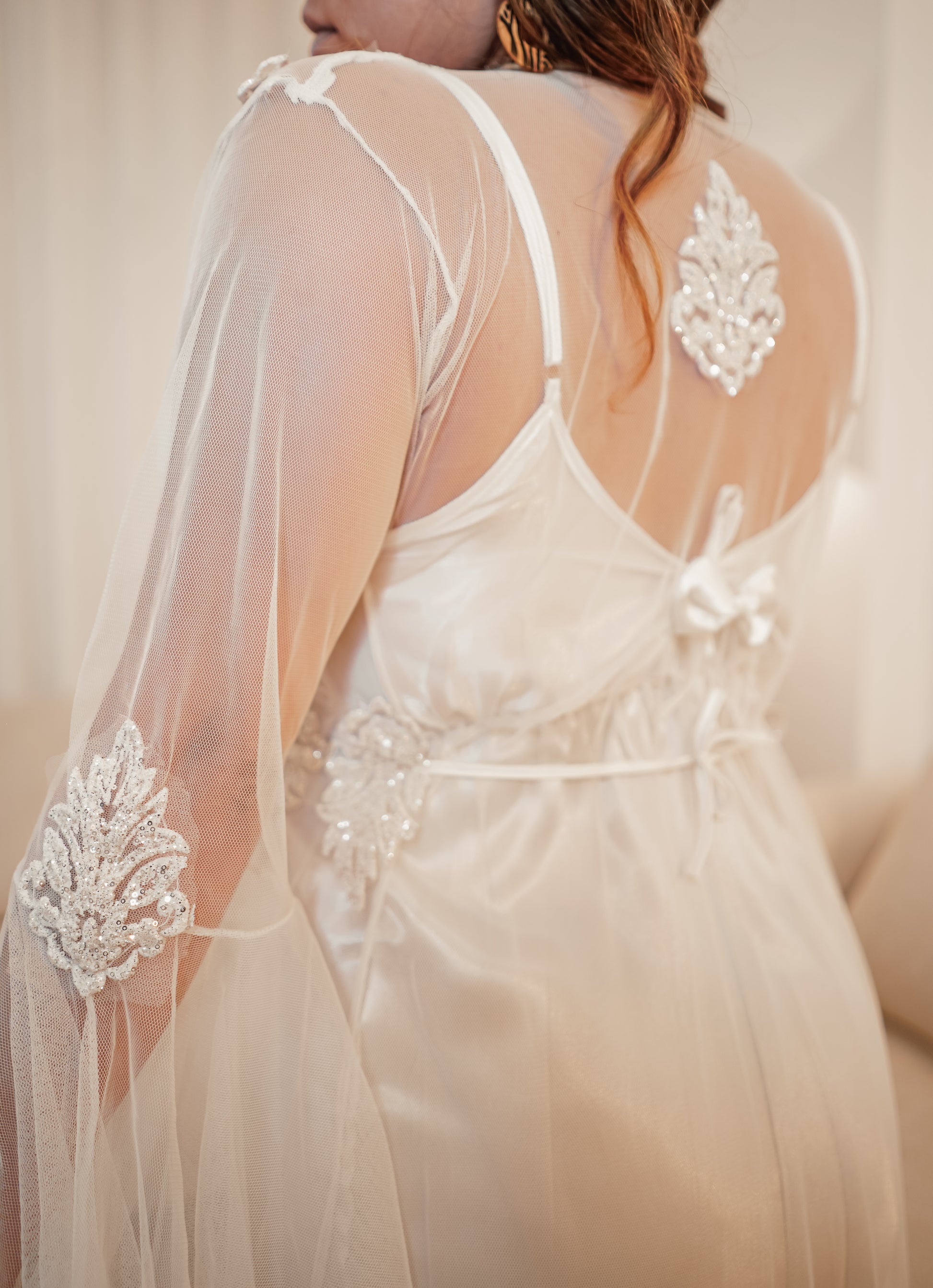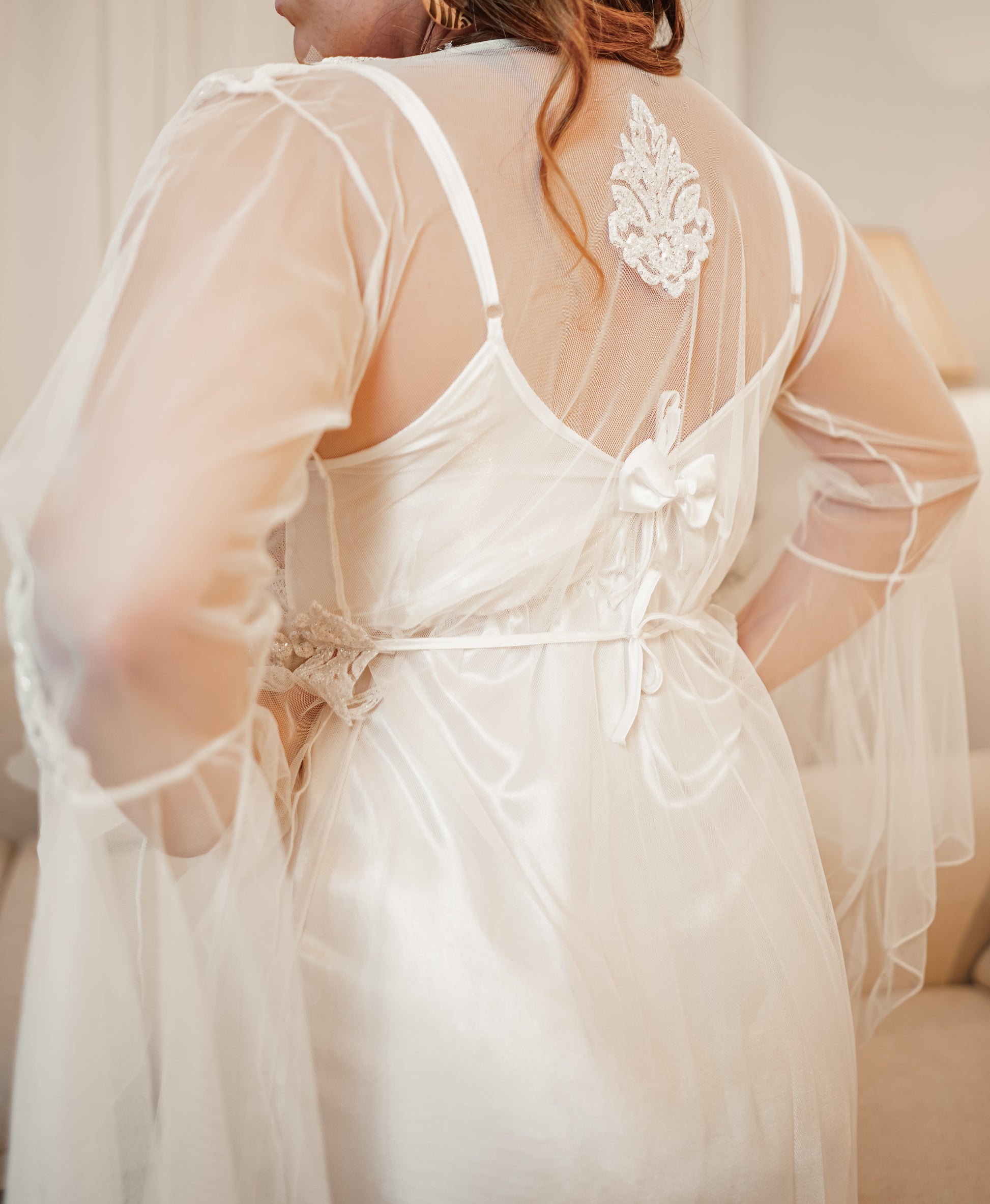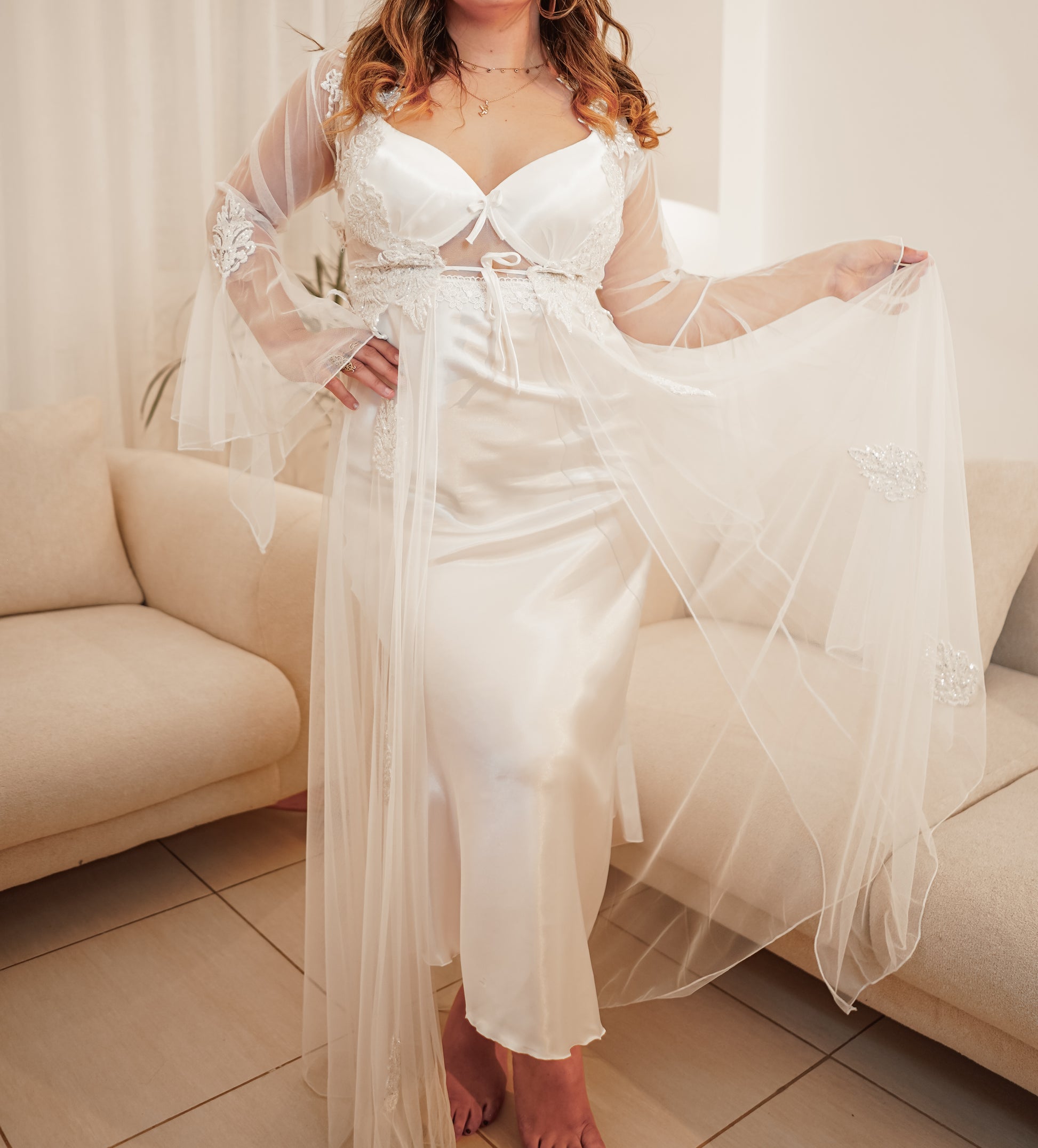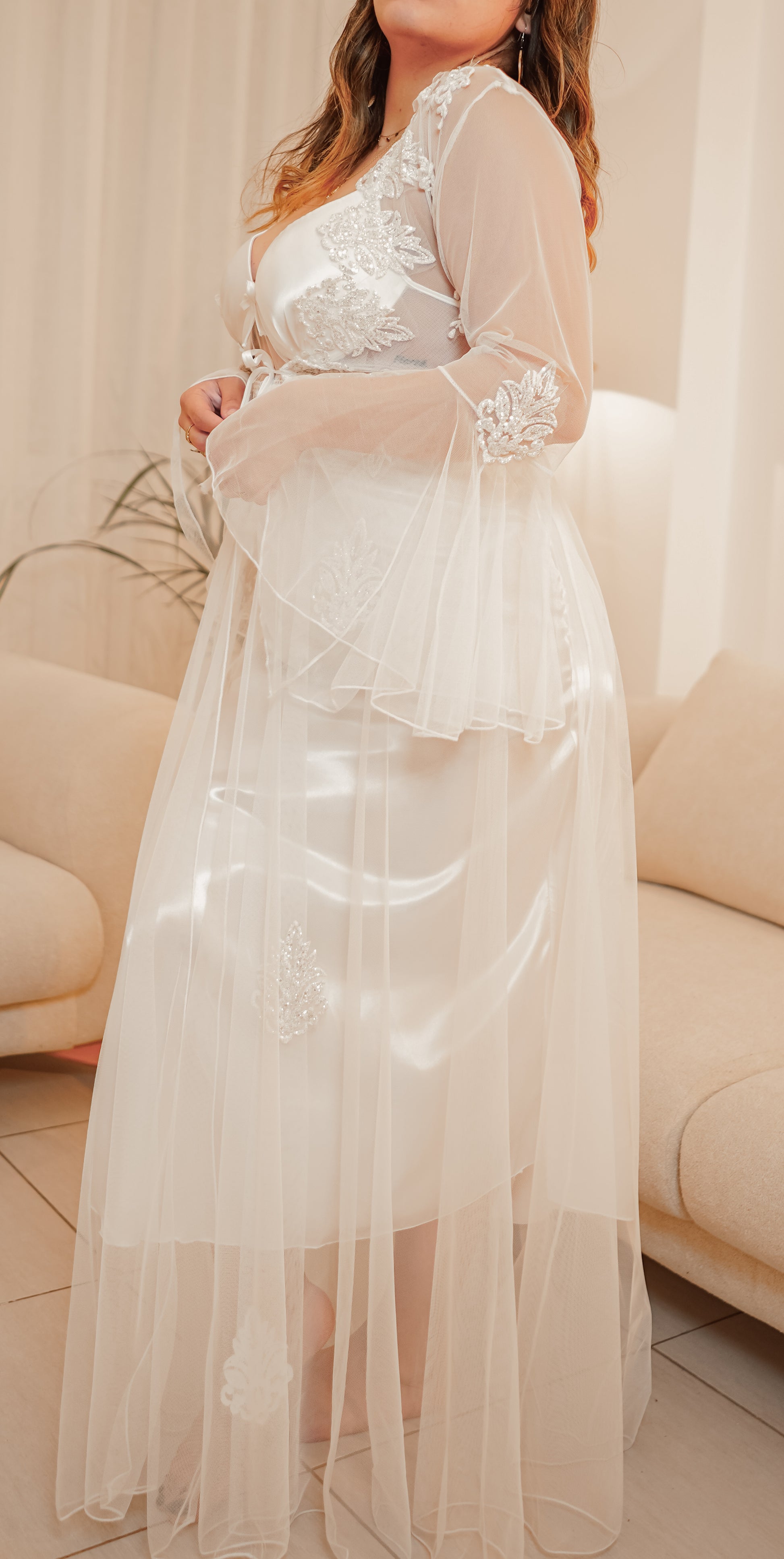 Déshabillé de Mariée en Satin & Tulle – Éclat de Douceur