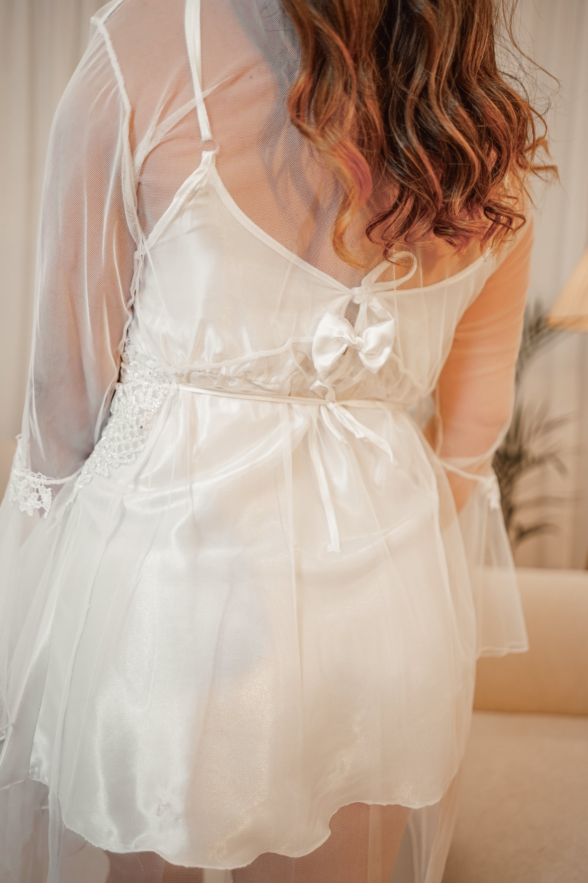 Déshabillé Mariée en Satin, Tulle & Dentelle – Douceur Sublimée